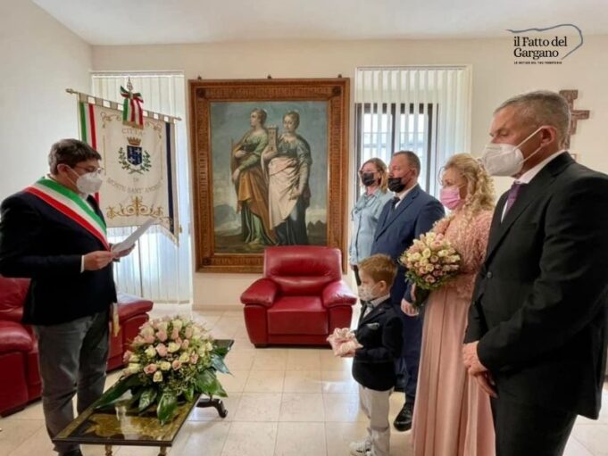 Lei è Olena, da 21 anni a Monte Sant’Angelo. Originaria di Sumy, vicino Kiev. Tutta la sua famiglia è scappata ai confini con la Polonia. Domani arriva sua figlia, Vittoria, con suo figlio. “A breve arriveranno altre 6 persone della sua famiglia. E noi li accoglieremo con gioia”. Racconta il sindaco Pierpaolo d’Arienzo che questa mattina ha celebrato il rito (foto).