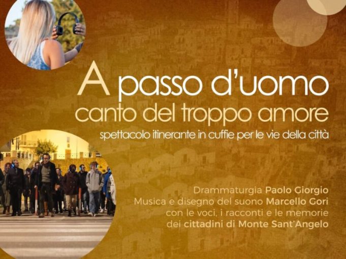 Da sabato 6 a mercoledì 10 luglio Monte Sant’Angelo sarà teatro naturale dello spettacolo itinerante in cuffie “A passo d’uomo. Canto del troppo amore”, realizzato dal Circolo Bergman in collaborazione con la compagnia teatrale Bottega degli Apocrifi, curatrice della residenza culturale teatro di Monte Capitale della Cultura di Puglia 2024. Frutto di un progetto artistico dedicato alla Città di Monte Sant’Angelo, lo spettacolo itinerante in cuffie accompagnerà gli spettatori tra le vie e i luoghi simbolo della città, offrendoci di essa uno sguardo inedito.