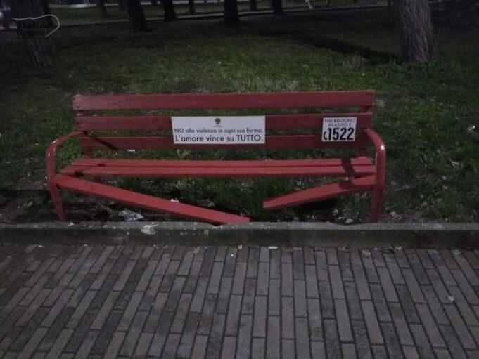 Le panchine di colore rosso sono numerose in tutta la Provincia di Foggia e simboleggiano il contrato alla violenza sulle donne. Non è un caso il colore rosso, colore del sangue, è il simbolo del posto occupato da una donna che non c’è più, portata via dalla violenza. La panchina è il simbolo di un percorso di sensibilizzazione verso il femminicidio e la violenza maschile sulle donne.