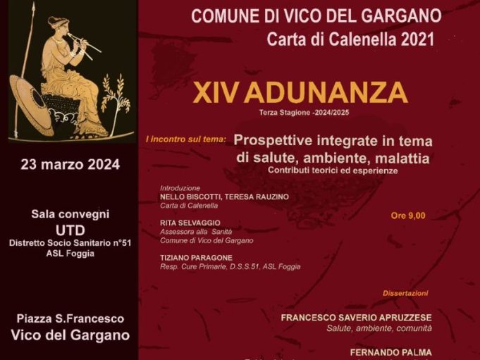 Si terrà a Vico del Gargano sabato 23 marzo, presso la sala convegni UDT (Asl Foggia), a partire dalle ore 9.00, una nuova “Adunanza” della Carta di Calennella. Le relazioni previste proporranno spunti di riflessione, e alcuni resoconti di esperienze sui temi della sanità pubblica.