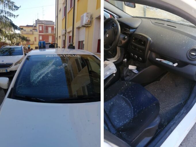 Gli agenti erano intenti nel sequestro di merce contraffatta, quando l’uomo ha iniziato ad inveire contro di loro, lanciandogli oggetti e tentando di colpirli con una catena, successivamente ha iniziato a colpire l’auto di servizio procurando parecchi danni (foto). Grazie anche all’intervento dei Carabinieri, allertati da numerose chiamate al 112, l’uomo è stato identificato e arrestato.