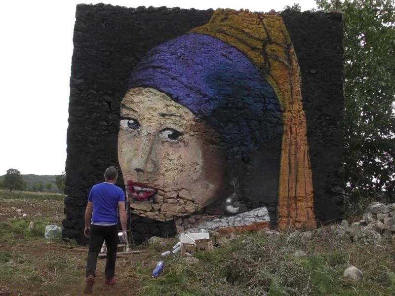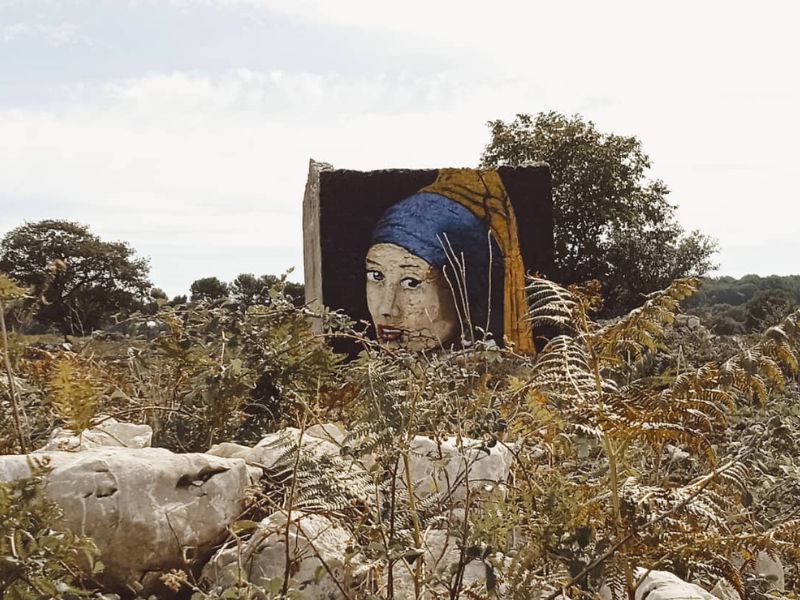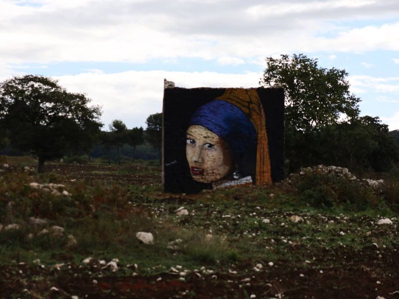 In località “Falcare”, nel Comune di Cagnano Varano, ecco l’ultimo murales realizzato dall’artista Paolo Di Cataldo, si tratta di un’opera che si sviluppa per circa quattro metri di altezza e per oltre tre metri e settanta di larghezza. La “tela” che ospita questa imponente opera è un vecchio rudere abbandonato. « È una combinazione di arte e natura-ci spiega l’autore- si tratta dell’opera conosciuta come la ragazza con il turbante o anche come la ragazza con l’orecchino di perla di Vermeer, che viene spesso riproposta in chiave street art sempre però in chiave pop, aggiungendo elementi come la mascherina o altro, in questo caso si tratta di una riproduzione fedele. Con queste dimensioni e con questa interpretazione ci sono solo due opere una in Nuova Zelanda e l’altra è questa. Il risultato è molto suggestivo, per chi percorre questa strada di campagna trovarsi davanti tutto ad un tratto questa figura realizzata su questo vecchio rudere, circondato da ampi terreni pianeggianti, il tutto diventa più pieno e più vivo».
