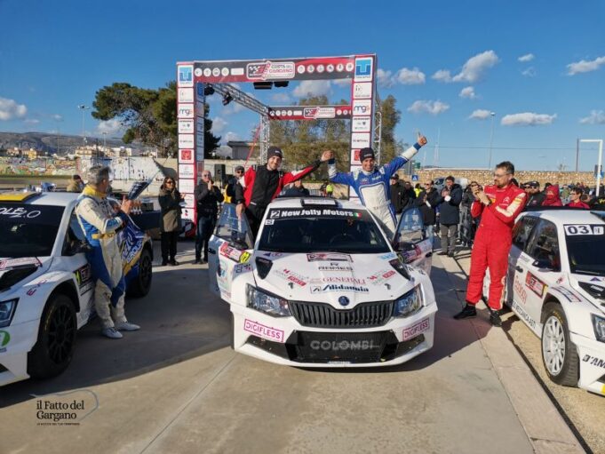 Giuseppe Bergantino e Mirko Di Vincenzo sono i vincitori della prima edizione del Rally Costa del Gargano. L’equipaggio garganico della scuderia New Jolly Motors vince in casa su Skoda Fabia con un tempo totale di 34′.38.4 su un percorso di poco più di 56 kilometri. A 1’45.6 si piazza il tandem composto da Gianluca D’Alto e Mirko Liburdi della Casarano Rally Team su Skoda Fabia. Sul terzo gradino del podio Vincenzo Tortorici e Fabio Andriani della scuderia Palladio, sempre su Skoda Fabia, con un distacco di 2’10.2.