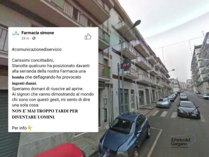 Una deflagrazione fortissima è stata udita dall’intero paese, colpita la farmacia Simone, “Non è mai troppo tardi per diventare uomini”, si legge sulla pagina social.