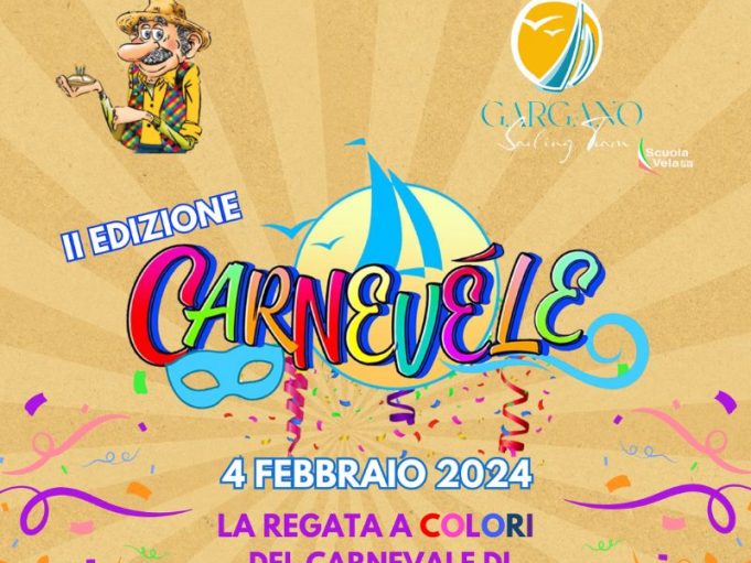 Domenica 4 febbraio 2024, in occasione del 70° Carnevale di Manfredonia avrà luogo la seconda edizione della Carnevéle, la regata amatoriale organizzata dalla scuola di vela Gargano Sailing Club, presso il Centro Nautico Sportivo il Mandracchio di Manfredonia.