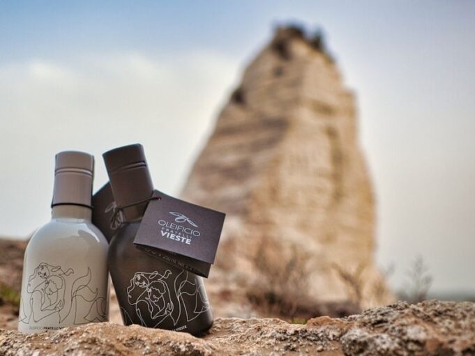 La linea di olio evo che ha fatto man bassa di premi è stata lanciata lo scorso anno. Sulle bottiglie, reca il disegno stilizzato di Cristalda e Pizzomunno, gli innamorati viestani di una leggenda che ha nel faraglione più fotografato del mondo uno dei simboli iconici di Vieste.
