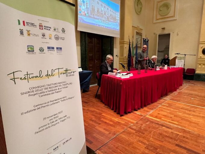 “Questo Festival è una festa di ricongiungimento tra regioni e comunità impegnate non solo a fare memoria, ma a far diventare la storia, la nostra storia, una matrice per rivivere e far rivivere culture e tradizioni comuni, lingue e dialetti, cucina e musica, modi di vivere la terra e il paesaggio, che sono un patrimonio che rischiamo ogni giorno di smarrire”. Lo ha detto il vicepresidente della Regione Puglia e assessore al Demanio e Patrimonio, Raffaele Piemontese, introducendo il Festival del Tratturo 2023, organizzato a Palazzo Dogana, oggi sede della Provincia di Foggia, antica Regia Dogana della Mena delle Pecore, fulcro dell’organizzazione della pastorizia nel Regno di Napoli, con l’uso dei pascoli regi e altri di proprietà privata, convogliando gli armenti attraverso i tratturi dall’Abruzzo, dal Molise e dalla Lucania nelle pianure della Puglia.