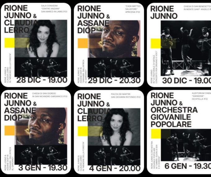 Protagonisti saranno musicisti, attori, danzatori e artisti, sotto la direzione dell’ A.p.s. Rione Junno, per una serie di iniziative culturali e artistiche di altro profilo, destinate a promuovere e sostenere la diffusione delle attività di spettacolo dal vivo in Puglia, la crescita del pubblico, il rinnovamento e l’internazionalizzazione della scena, lo sviluppo della filiera dello spettacolo e delle industrie culturali e creative, delle connesse professionalità artistiche, tecniche ed imprenditoriali che operano nella regione, e dell’attrattività del territorio pugliese e la valorizzazione e promozione dei suoi attrattori culturali ed ambientali attraverso lo spettacolo dal vivo, le arti performative e le attività culturali.