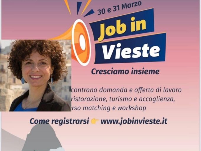 “Job In Vieste”, un evento di Matching fortemente voluto dal Comune di Vieste ed in particolare dall’Assessorato al turismo e alle attività produttive e dagli imprenditori del comparto turistico del territorio.