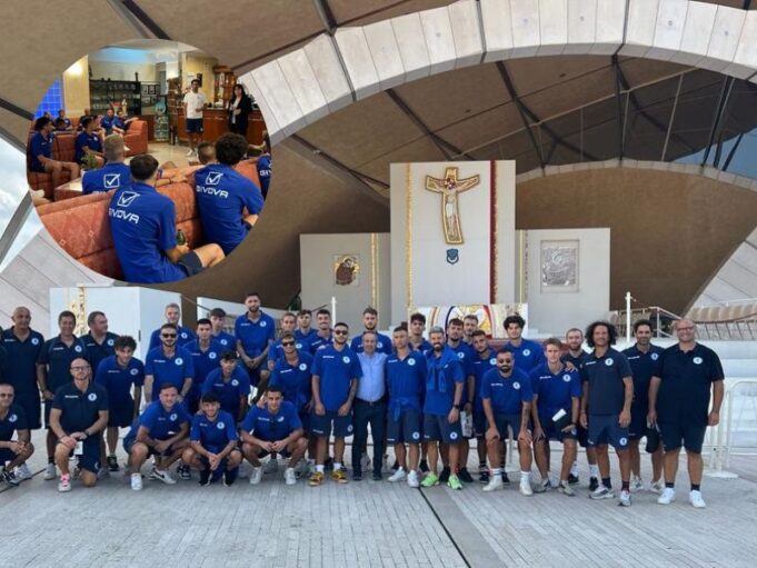 “È fondamentale la cura del fisico e degli aspetti tecnico-tattici ma per noi della Fidelis è importante anche la cura dello spirito. Ed allora con l’accompagnamento del nostro Padre Spirituale Don Vito Zinfollino abbiamo fatto visita al Santuario di San Pio ed ai luoghi pieni di fede e significato di San Giovanni Rotondo (foto grande). Un’occasione per riflettere, per rigenerare lo spirito e la fede, per raccontare un uomo che ha rappresentato moltissimo per l’intera comunità cristiana e cioè Padre Pio. Un ringraziamento ai Frati Cappuccini di San Giovanni Rotondo”. Con questo messaggio la Fidelis Andria dialoga con i propri tifosi in questi giorni di ritiro, prima del campionato, nella città di San Giovanni Rotondo.