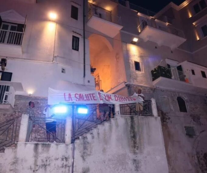 Durante l’ultima serata del festival letterario “Il Libro Possibile”, evento da oltre 220.000 euro di fondi pubblici, è accaduto un fatto tanto simbolico quanto preoccupante: uno striscione con la scritta “La salute è un diritto” (foto), esposto pacificamente da alcuni cittadini del Comitato per la Sanità Negata, è stato rimosso dalle forze dell’ordine.
