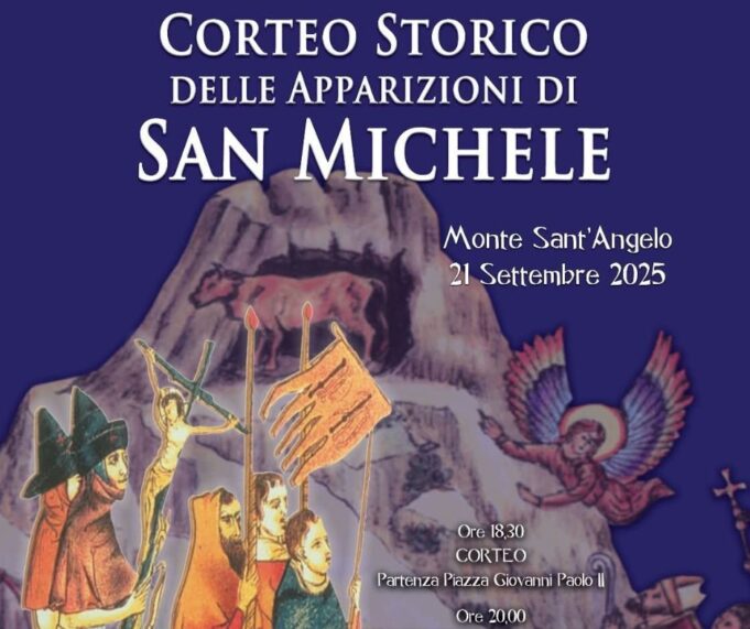 A Monte Sant’Angelo, come da tradizione ultradecennale, la domenica che precede la festa patronale di San Michele Arcangelo è dedicata a uno degli eventi più suggestivi e partecipati: il Corteo storico delle Apparizioni di San Michele Arcangelo, in programma per domenica 21 settembre 2025. Una manifestazione che, di fatto, rappresenta l’anteprima delle celebrazioni in onore del Santo Patrono.