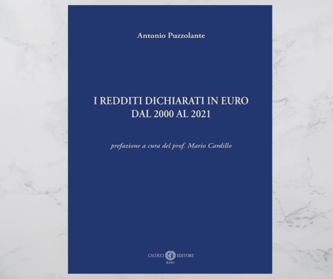 “I redditi dichiarati in euro dal 2000 al 2021” è l’ultimo volume scritto dal dott. Antonio Puzzolante, con la prefazione curata dal prof. Mario Cardillo, edito da Cacucci. Si tratta «non soltanto di una testimonianza di meticolosità e precisione, ma si presenta come una colonna di competenza e dedizione, frutto dell’esperienza maturata all’interno dello staff di un Comune prestigioso come quello di San Giovanni Rotondo», come afferma nella prefazione il prof. Cardillo. È un prezioso elaborato che si muove tra teoria e pratica.