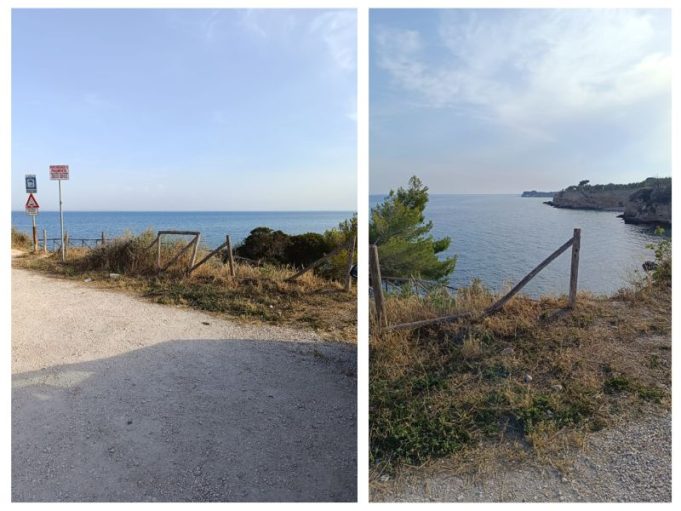 “Di recente, l’Assessore ci ha comunicato di aver fatto sistemare le staccionate (ad eccezione dell’ultimo tratto afferente alla falesia che attualmente è interessata dai lavori di messa in sicurezza). Ebbene, quando, qualche giorno fa, siamo andati a verificare, lo scenario che si è aperto davanti ai nostri occhi ci ha fatti rabbrividire”.