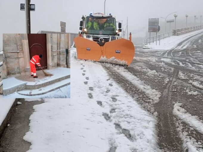 Pochi millimetri di neve caduti nella notte a Monte Sant’Angelo, immediato l’intervento della squadra di Protezione civile che si è attivato sin dalle prime luci dell’alba.