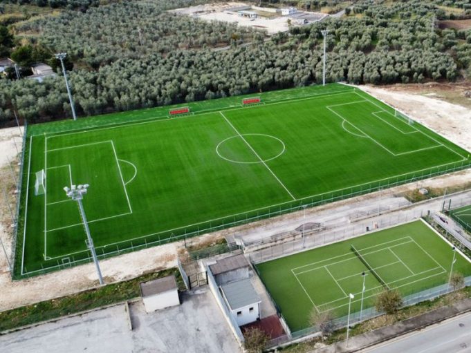 Un accurato e professionale lavoro di restyling quello svolto dalla De Cata Sport, che si è occupata di mettere a nuovo il campo. Il lavoro ha previsto la recinzione, il drenaggio, l’impianto d’irrigazione e il fondo riempitivo quale piano di posa per il nuovo manto in erba sintetica di ultima generazione, il tutto secondo le ultime normative CONI e LND. a 5.