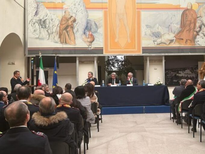 Nel Chiostro comunale di Palazzo San Francesco, si è tenuta la tavola rotonda “Ruolo della Polizia locale per la sicurezza della città e la tutela legale” sono intervenuti, tra gli altri, il Prefetto di Foggia, Dott. Maurizio Valiante, il sindaco Michele Crisetti e il Comandante della Polizia Locale, Giuseppe Bramante.