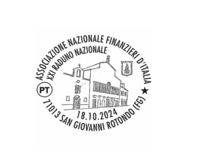 In occasione del XXI Raduno nazionale dell’ANFI – Associazione Nazionale Finanzieri d’Italia, in programma a San Giovanni Rotondo, il 18-19-20 ottobre Poste Italiane attiverà un servizio filatelico temporaneo con bollo speciale richiesto dall’Associazione stessa.