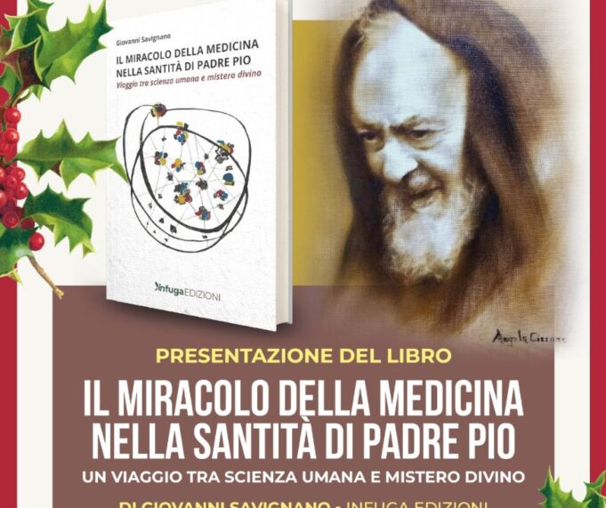 Venerdì 19 dicembre 2025, alle ore 17:00, la Sala Club Pasteus del Codà Lounge Club, in via S. Croce 13, ospiterà la presentazione del libro “Il miracolo della medicina nella santità di Padre Pio – Un viaggio tra scienza umana e mistero divino”, scritto da Giovanni Savignano e pubblicato da Infuga Edizioni.