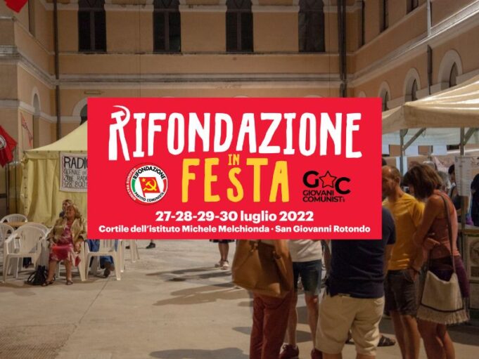 Il programma della ventottesima Festa organizzata dal Circolo “Luigi Pinto” del Partito della Rifondazione Comunista di San Giovanni Rotondo, da mercoledì 27 a sabato 30 luglio, nel cortile della Scuola Melchionda, si alterneranno artisti, cantanti e politici.