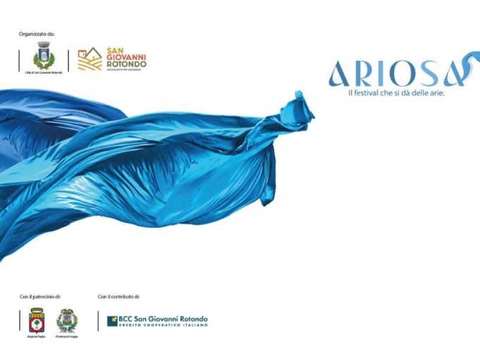 Il festival, organizzato dal Comune di San Giovanni Rotondo e curato dalla società Pugliaidea, è patrocinato dalla Regione Puglia e dalla Provincia di Foggia, con il contributo della BCC San Giovanni Rotondo. Il programma della prima edizione del festival ARIOSA sarà presentato a Foggia giovedì 11 aprile, alle 10.30, nella Sala della Ruota di Palazzo Dogana.