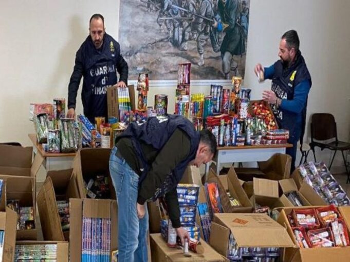 Durante il controllo i finanzieri hanno rinvenuto 44.729 di artifici pirotecnici custoditi anche in un magazzino, insieme a prodotti cartacei e alcolici senza nessuna precauzione.