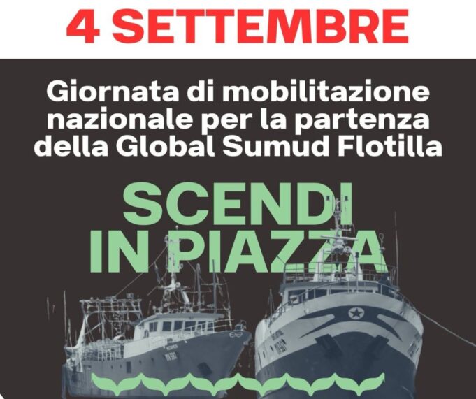 Giovedì 6 settembre sarà una giornata di mobilitazione in tutta Italia per sostenere Global Sumud Flotilla la missione umanitaria che si sta dirigendo da Barcellona, Genova e altri porti a Gaza.