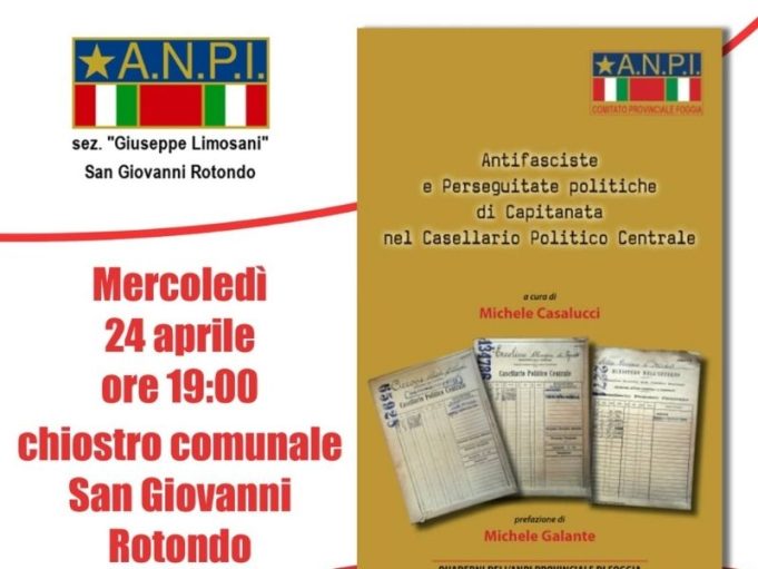 Il libro è il secondo della collana dedicata dall’ ANPI provinciale di Foggia agli Antifascisti e ai perseguitati politici di Capitanata iscritti nel Casellario Politico Centrale.