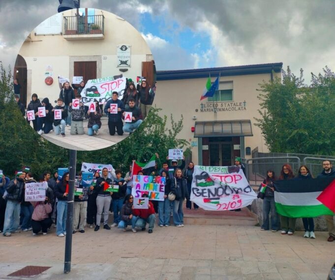 Oggi, venerdì 3 ottobre, sulla scia dello Sciopero Generale indetto da USB e CGIL, a San Giovanni Rotondo numerosi studenti, studentesse, docenti, giovani universitari e lavoratori hanno deciso di scendere in piazza per rompere il silenzio e schierarsi apertamente al fianco del popolo palestinese. La manifestazione nasce come risposta immediata all’attacco israeliano contro la Global Sumud Flotilla, che nei giorni scorsi ha visto la confisca delle navi e l’arresto degli attivisti che trasportavano aiuti umanitari verso Gaza.