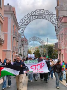 Durante l’iniziativa, gli studenti hanno preso la parola: hanno ricordato le vittime del genocidio in Palestina, sottolineato la violazione del diritto internazionale, richiamato il governo Italiano ad una assunzione di responsabilità e alla cessazione di ogni legame di complicità con lo stato di Israle. Gli studenti hanno anche ribadito l’eroismo della flottilla internazionale, che ha provato ad aprire un corridoio umanitario per portare tonnellate di aiuti alla popolazione di Gaza.