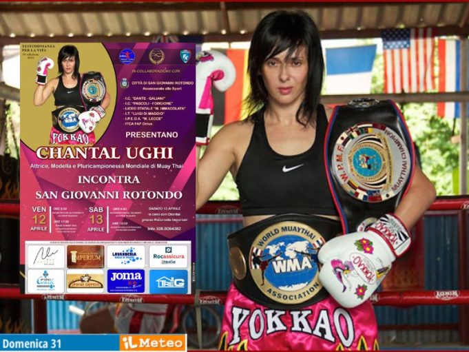 La tappa finale è programmata per sabato 13 aprile , alle ore 18, nel Palazzo di Città dove, dopo i saluti del sindaco Michele Crisetti e dell’assessore allo sport Lucia Palladino, Chantal incontrerà le famiglie – l’incontro sarà moderato dal giornalista Giulio Siena – per spiegare, insieme al neuropsichiatra infantile Michele Germano, gli effetti fortificanti dello sport nazionale thailandese: la Muay Thai; sport orientale arrivato per la prima volta a San Giovanni Rotondo nel 1997 grazie a Stefano De Bonis, insegnante di Muay Thai con esperienze di Body Guard al fianco di numerosi VIP (Pavarotti, Sting, Jon Bon Jovi etc) con un passato ricco di competizioni sportive in varie discipline marziali (nel 1992 conquista a Napoli il titolo di Campione Italiano di Kung Fu con la scuola Oriental Sport del maestro Aldo Fini, dove ha iniziato a praticare le arti marziali grazie all’amico fraterno Gino Lalla) e allievo del grande maestro di Muay Thai modenese Michele Araldi. La Muay Thai prossimamente farà parte delle Olimpiadi.