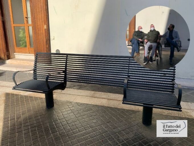 È stata inaugurata ieri mattina davanti a Palazzo di città la prima panchina inclusiva della cittadina garganica, progettata perché l’utilizzo sia consentito anche a chi è in carrozzina.
