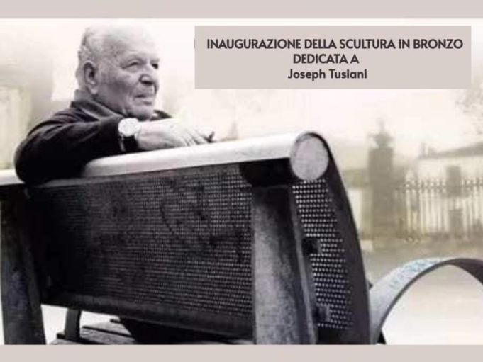 La scultura, realizzata in bronzo dall’architetto di fama mondiale Antonio Pio Saracino, rappresenta una rivisitazione di una celebre foto che ritrae il poeta Tusiani seduto su una panchina di New York con vista sul ponte di Brooklyn e verrà posizionata nei pressi della villa Comunale già a lui dedicata. Una sorta di ritorno a casa, un modo per dire “Grazie Joseph, la tua lettera ma’ ‘mpustata noi l’abbiamo ricevuta, ora puoi riposare in pace tra noi e tutte le volte che vorrai volgere lo sguardo a ddi stelle fute fute e bbelle / e tutte quante me pàrene fatte / a fforma de nu bastementechijne / de povere emigrante come me…”