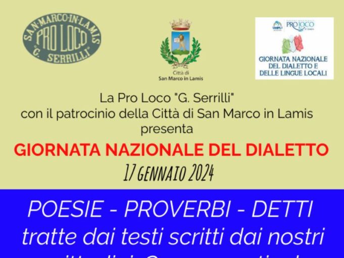 Inoltre la Pro Loco “G. Serrilli” invitta tutti i cittadini di San Marco in Lamis residenti e fuori sede, a pubblicare il 17 gennaio, su Facebook e Instagram, poesie, proverbi, citazioni, filastrocche o canzoni in dialetto, contrassegnati dagli hashtag: #giornatadeldialetto e #dilloindialetto.