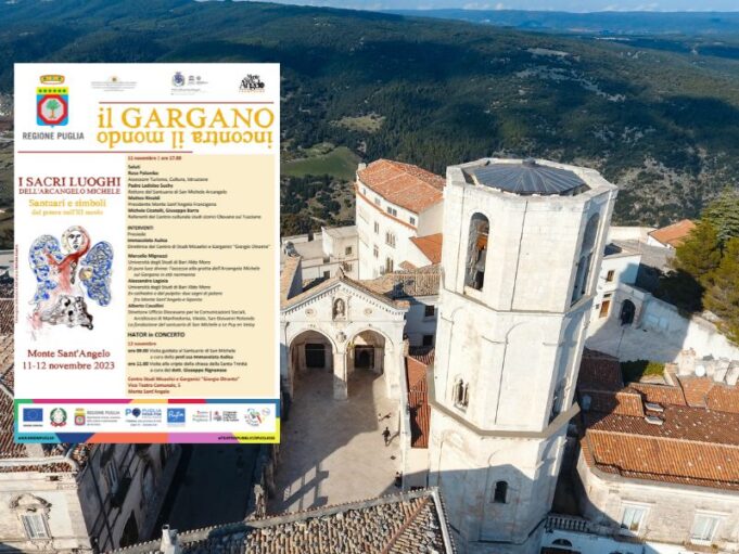 L’associazione Monte Sant’Angelo Francigena, in collaborazione con il Comune di Monte Sant’Angelo ed il Centro Studi Micaelici e Garganici “Giorgio Otranto”, all’interno del format “IL GARGANO INCONTRA IL MONDO. Arte, danza, musica e teatro in ogni stagione” programmato da Agenzia Pugliapromozione e Consorzio Teatro Pubblico Pugliese e rientrante nel palinsesto Pugliapromozione Teatro Pubblico Pugliese: Puglia, riscopri la meraviglia 2023, il quale prevede una serie di iniziative culturali destinate ad animare vari luoghi del territorio garganico, favorendo l’attrattività e la valorizzazione del brand Puglia e quindi la destinazione culturale e turistica correlata, organizza due giornate di riflessione sul tema “I sacri luoghi dell’Arcangelo Michele”, Santuari e simboli del potere nell’XI secolo, che si svolgeranno sabato 11 e domenica 12 novembre a Monte Sant’Angelo.