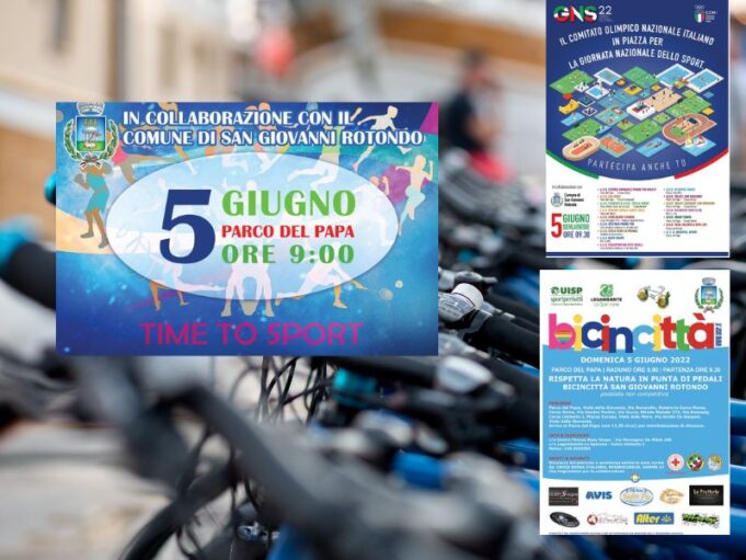 Ad illustrare il primo, che si svolgerà sotto la direzione del CONI e in coordinamento con gli organismi sportivi e le associazioni sportive affiliate, Michele Biancofiore, fiduciario CONI per San Giovanni Rotondo: «Una grande festa all’insegna di chi ama e pratica lo sport con tante discipline sportive coinvolte. Le varie A.S.D. locali si posizioneranno in diverse zone del paese tra cui Corso Umberto, Piazza Europa, Piazza Padre Pio, Parco del Papa e al campetto di basket in Piazza Madre Teresa di Calcutta. E si attiveranno in iniziative, eventi e manifestazioni volte a valorizzare la funzione dello sport quale fondamentale fattore di crescita e di arricchimento dell’individuo, di miglioramento delle qualità della vita e di responsabilizzazione e rafforzamento della società civile».