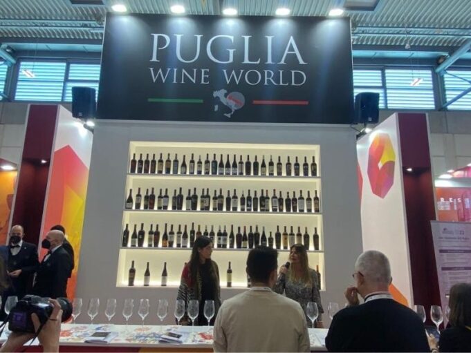 La Puglia non poteva mancare al Padiglione 11 con le sue 110 le aziende vitivinicole per mostrare e far degustare oltre 10 mila etichette e cogliere l’occasione di posizionarle sui principali mercati del mondo, confrontandosi con oltre 4.000 aziende produttrici da 19 nazioni. Ricco il programma delle attività dal titolo “Puglia Wine World”: il padiglione della Regione Puglia, allestito in collaborazione con Unioncamere Puglia, che ospiterà 60 tra eventi, conferenze, incontri di approfondimento e show cooking, realizzati da dieci realtà pugliesi, associazioni per la promozione del vino e operatori economici.